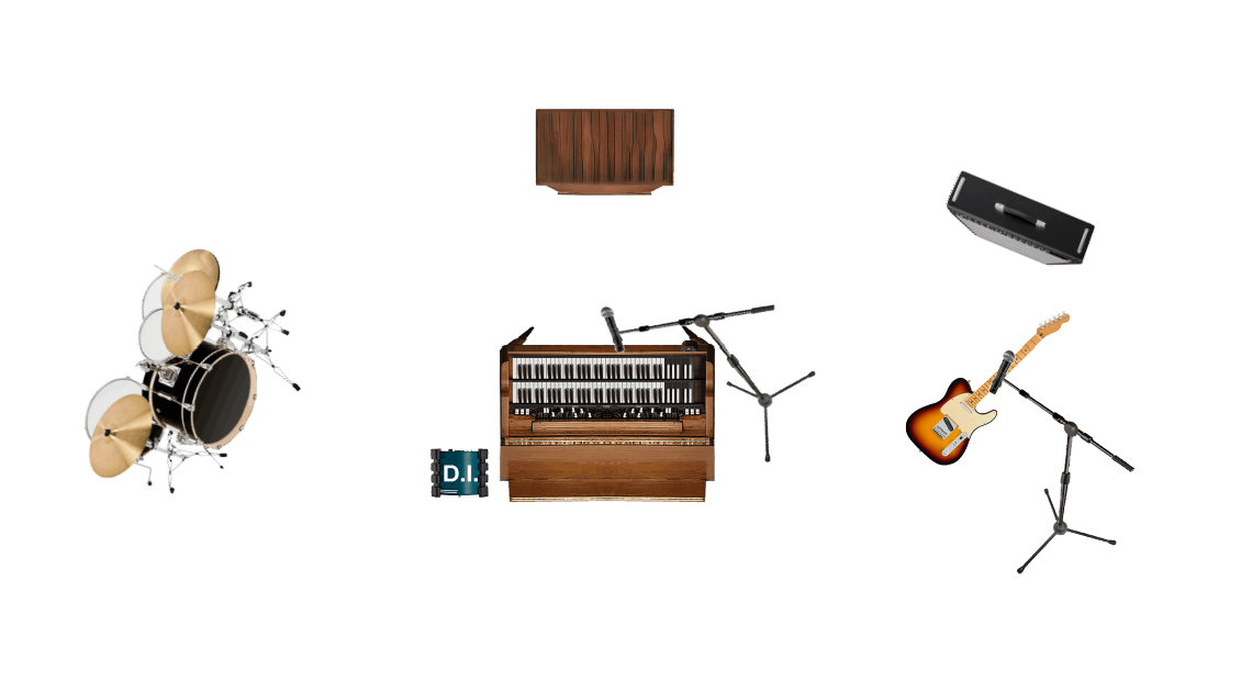 Mono DI from Organ (Feeds entire Organ Signal, needs to be Hi-Cut so it is exclusively a Bass signal)